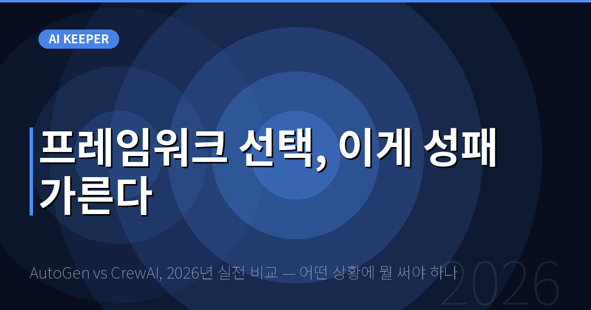 이 글의 핵심: AutoGen과 CrewAI는 둘 다 훌륭한 멀티에이전트 프레임워크지만, 선택 기준은 "내가 제어하고 싶은 에이전트 대화의 자유도"와 "팀의 Python 숙련도"에 달려 있다.